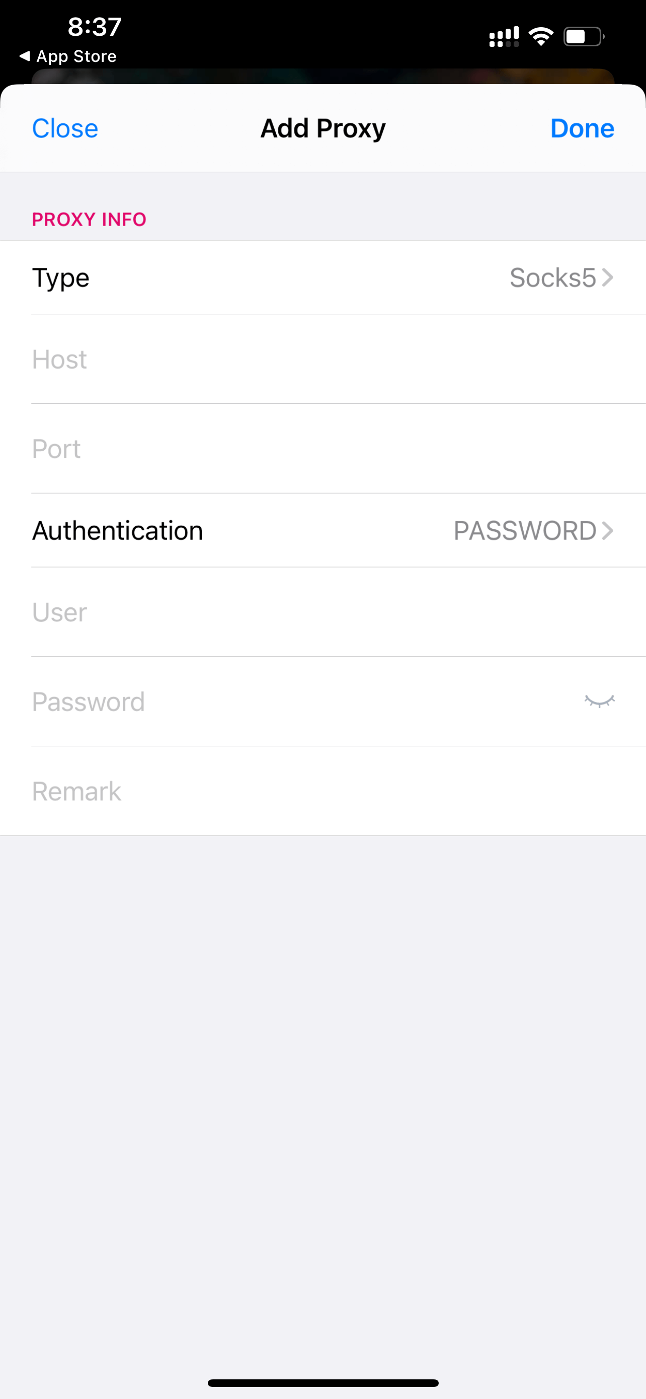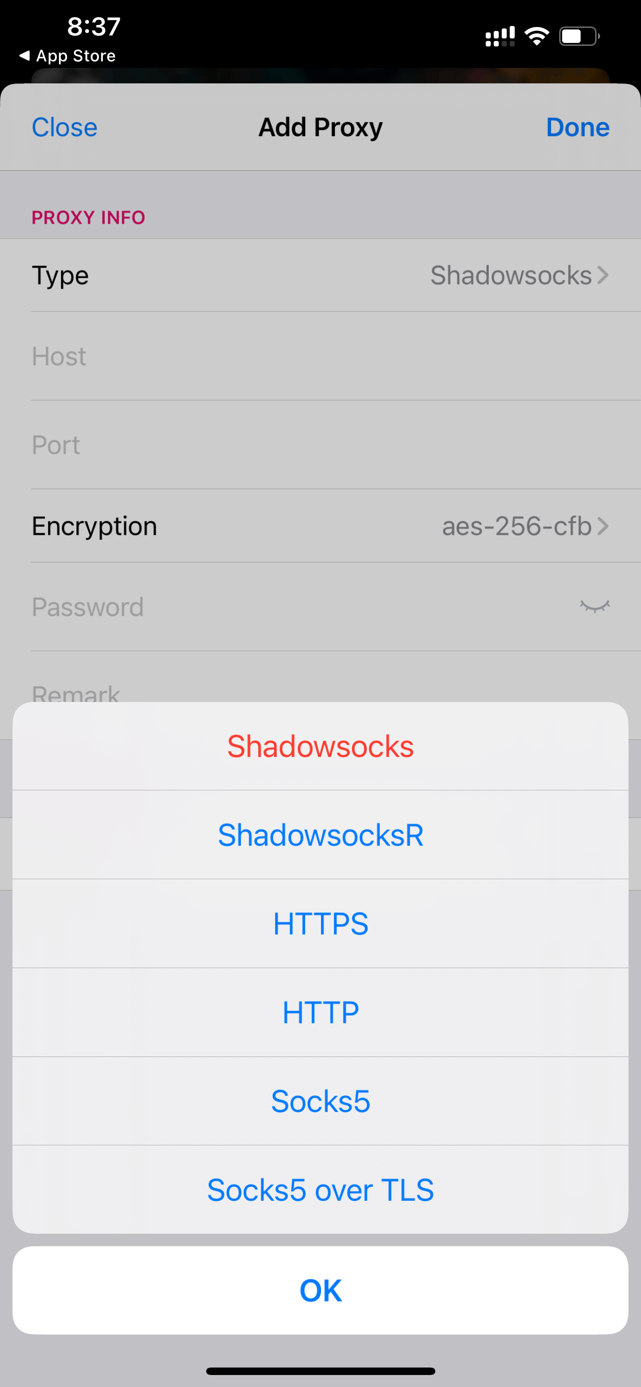 روی قسمت Type بزنید و گزینه Socks5 را انتخاب کنید.