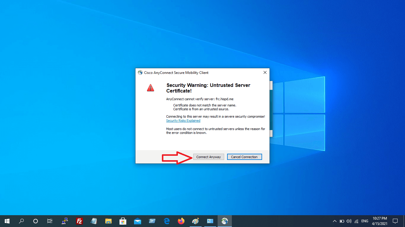 و در صورت مشاهده پیام زیر روی Connect Anyway بزنید.
