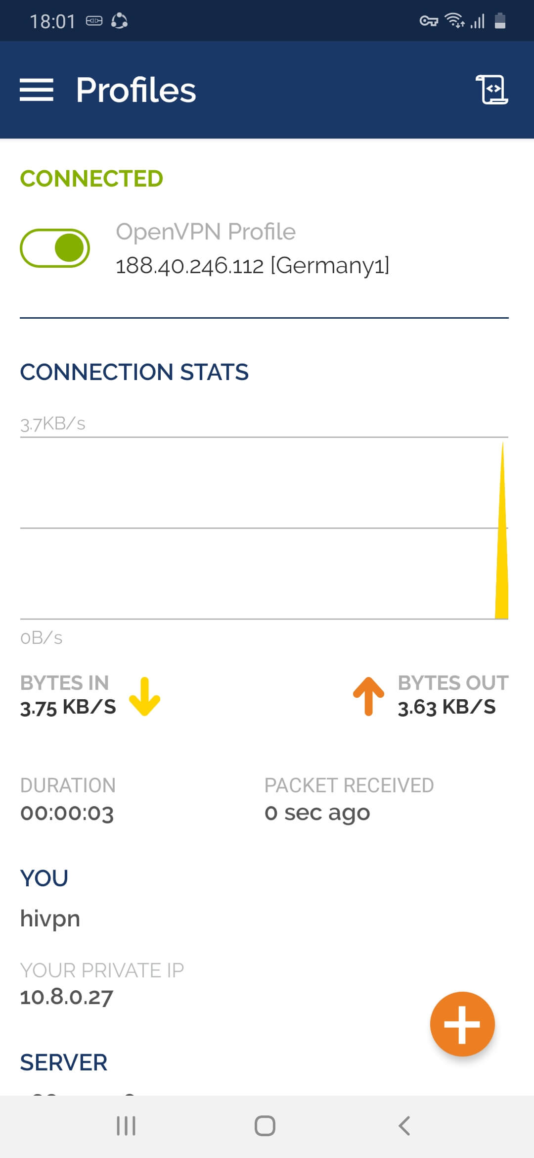 صفحه زير اتصال موفق شما به OpenVPN را نشان ميدهد.