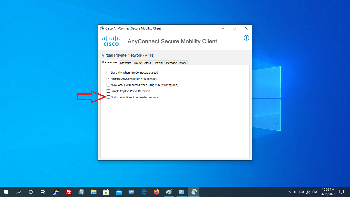 صفحه زير اتصال موفق شما به Cisco Anyconnect را نشان ميدهد.